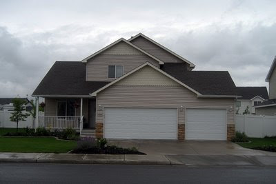 We finally put the shutters and new lights up on the house. We also spread bark, planted a tree and put matching pots on the porch. I love the way bark helps polish up the beds while the plants are still filling in. Below is a picture of what the front looked like when we moved here in 2007.